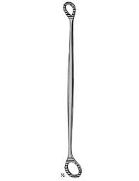 It is a graduated metallic rod about 12 inches long. The distal end is curved at and is 2 inches long (normal cervical canal length). The tip of the instrument is blunt.